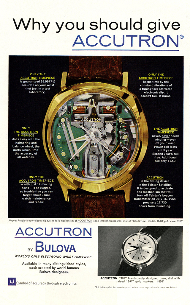 また、1926年からは時計メーカーとしてアメリカ初のラジオ広告を、1941年からは世界初のテレビコマーシャルを実施。有名な週刊誌にカラーの見開き広告も出稿するなど、ブローバはマーケティングの分野でも先進的な取り組みを行い、今日の時計ビジネスの枠組みを形成しました。
