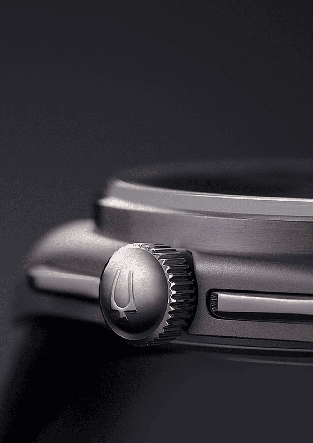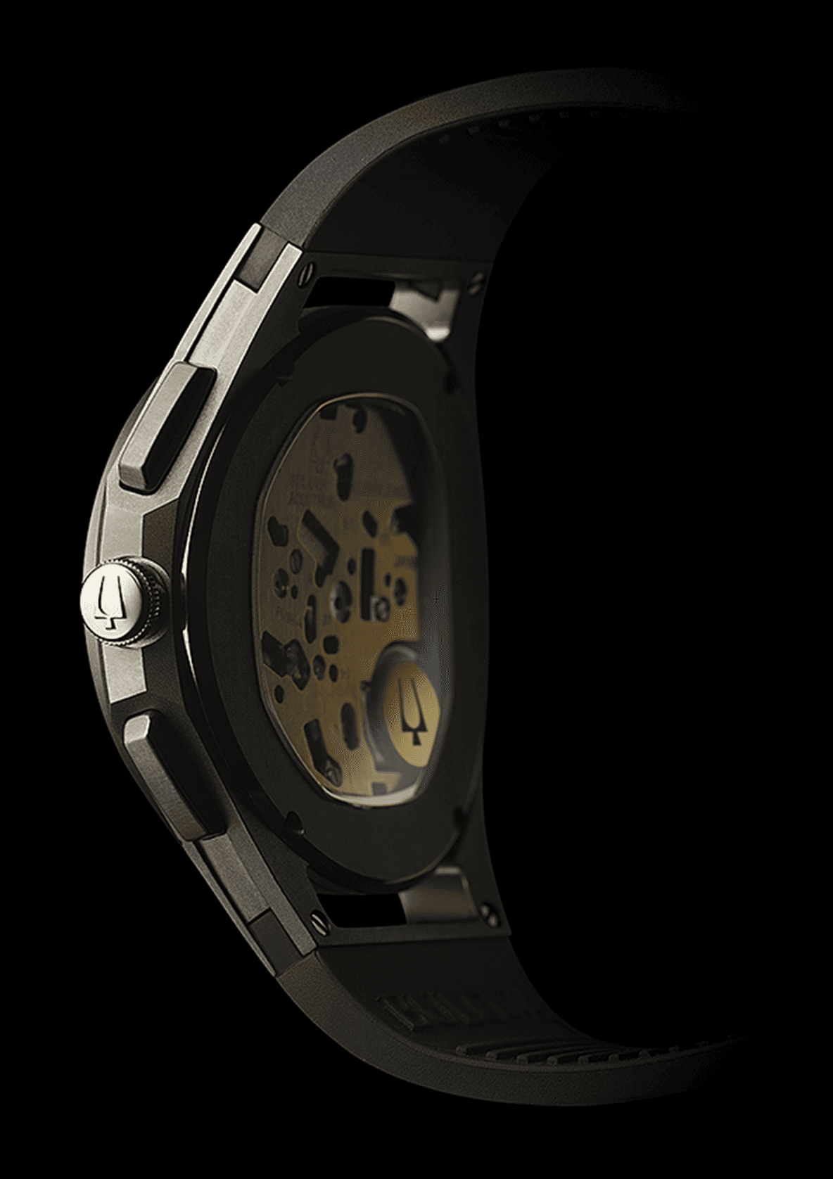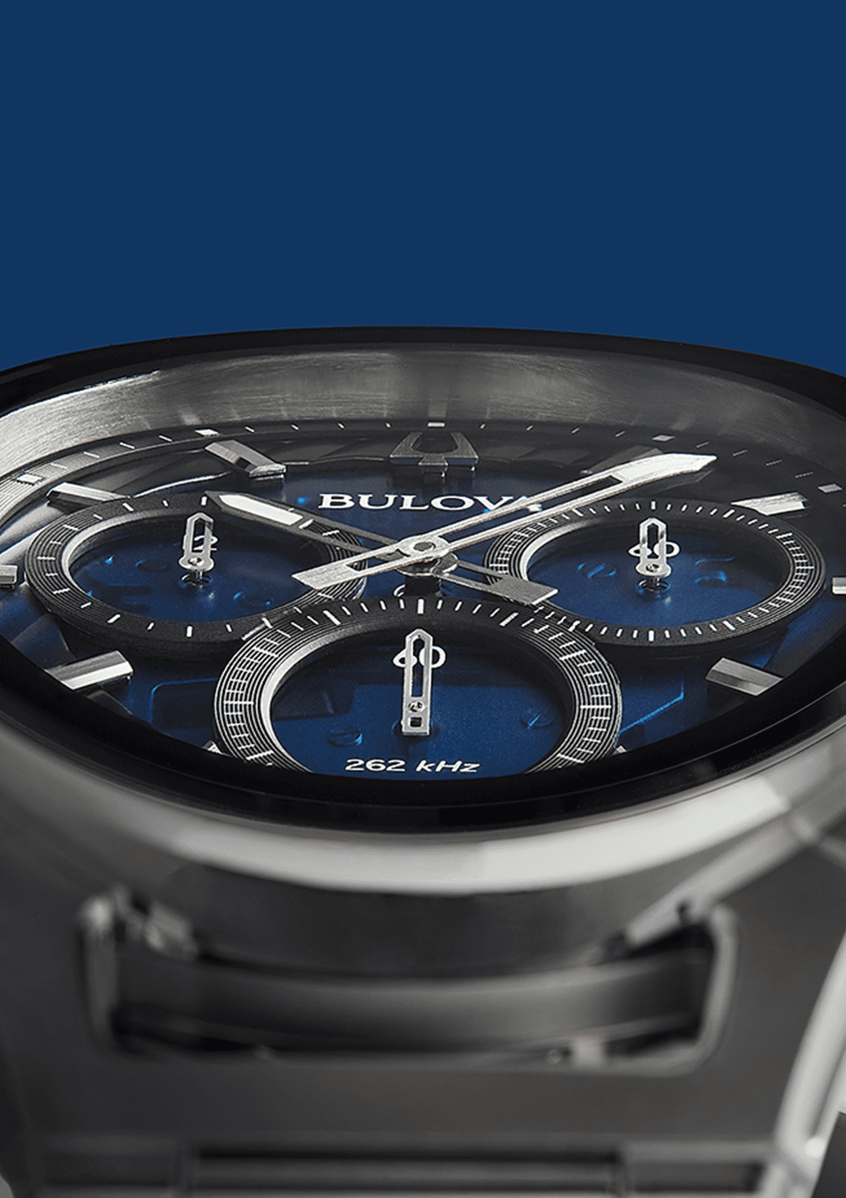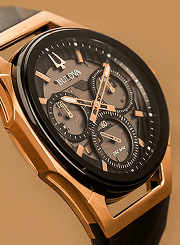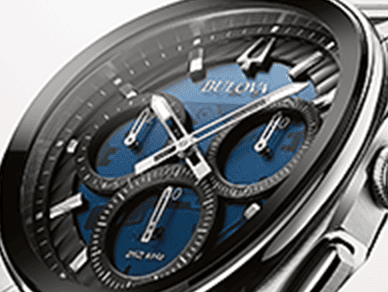 2016年世界初クロノグラフムーブメントごとカーブさせた「カーブ」を発表。デザインのキーワードとなったのが、曲線美と薄さです。曲線美は広いガラス面やケースラグなどの面で、薄さはケースサイドなどに見られる線で表現されています。腕に沿うようカーブさせた基盤を用意し、クォーツ振動子やコイル、電池など曲げることのできないパーツの配置を決定。長針が12時や6時の位置にきたときにカーブした風防に接触しないよう、針の高さや風防の厚みを0.1mm 単位で調節しています。文字板を曲げたのも、ブローバにとって初めての出来事でした。リングを乗せた後で文字板全体を曲げる製造工程も、このコレクションのためだけに開発されました。