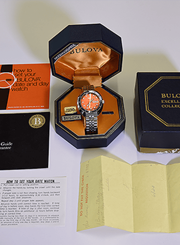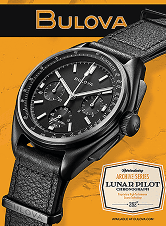 1971年にアメリカ、NASAの「アポロ15号」が月面着陸に成功した際に、 船長が月面で使用したクロノグラフの時計、“ルナ パイロット クロノグラフ” 。 当時のBULOVAロゴを採用、デイト表示のない文字盤はより忠実にオリジナルを再現しました。 復刻モデルは、ブローバ独自の262KHz で振動する高精度ムーブメント(月差±5秒)が搭載されたハイスペッククロノグラフウォッチです。