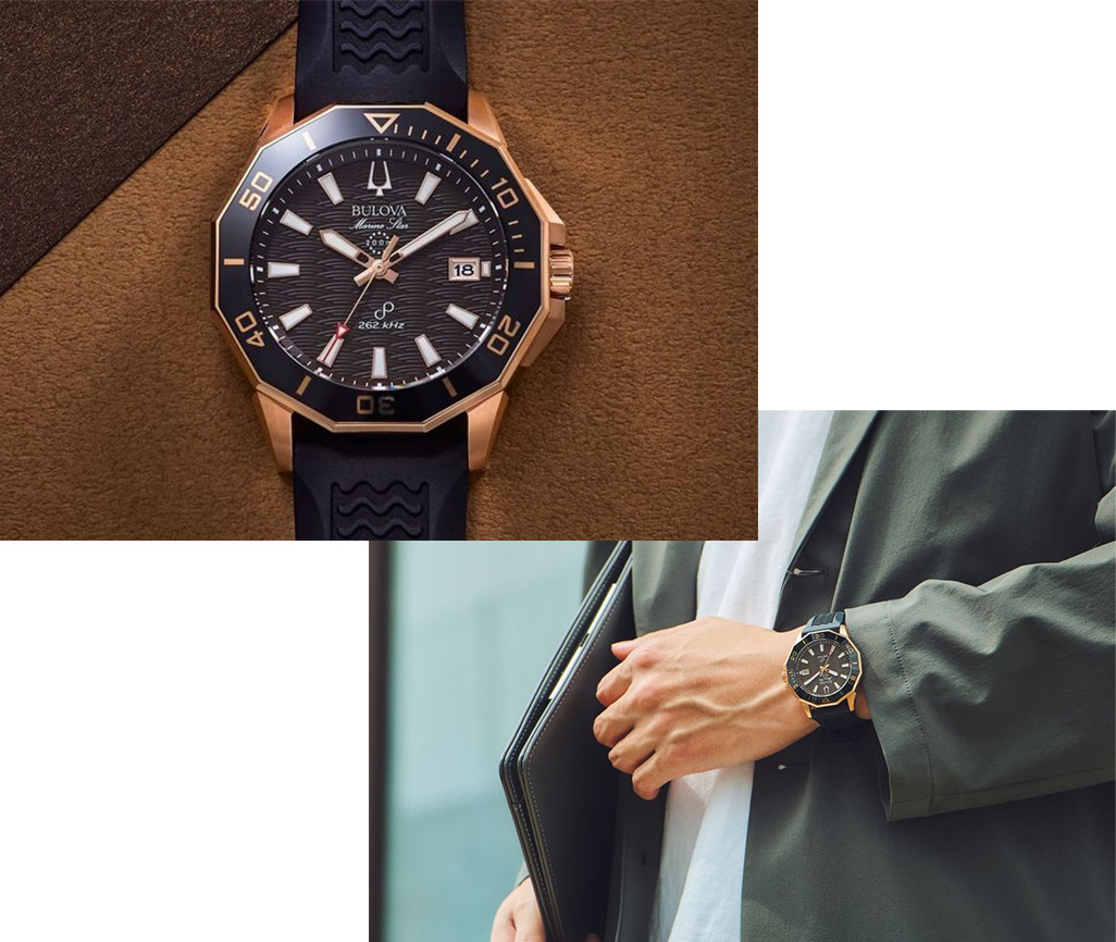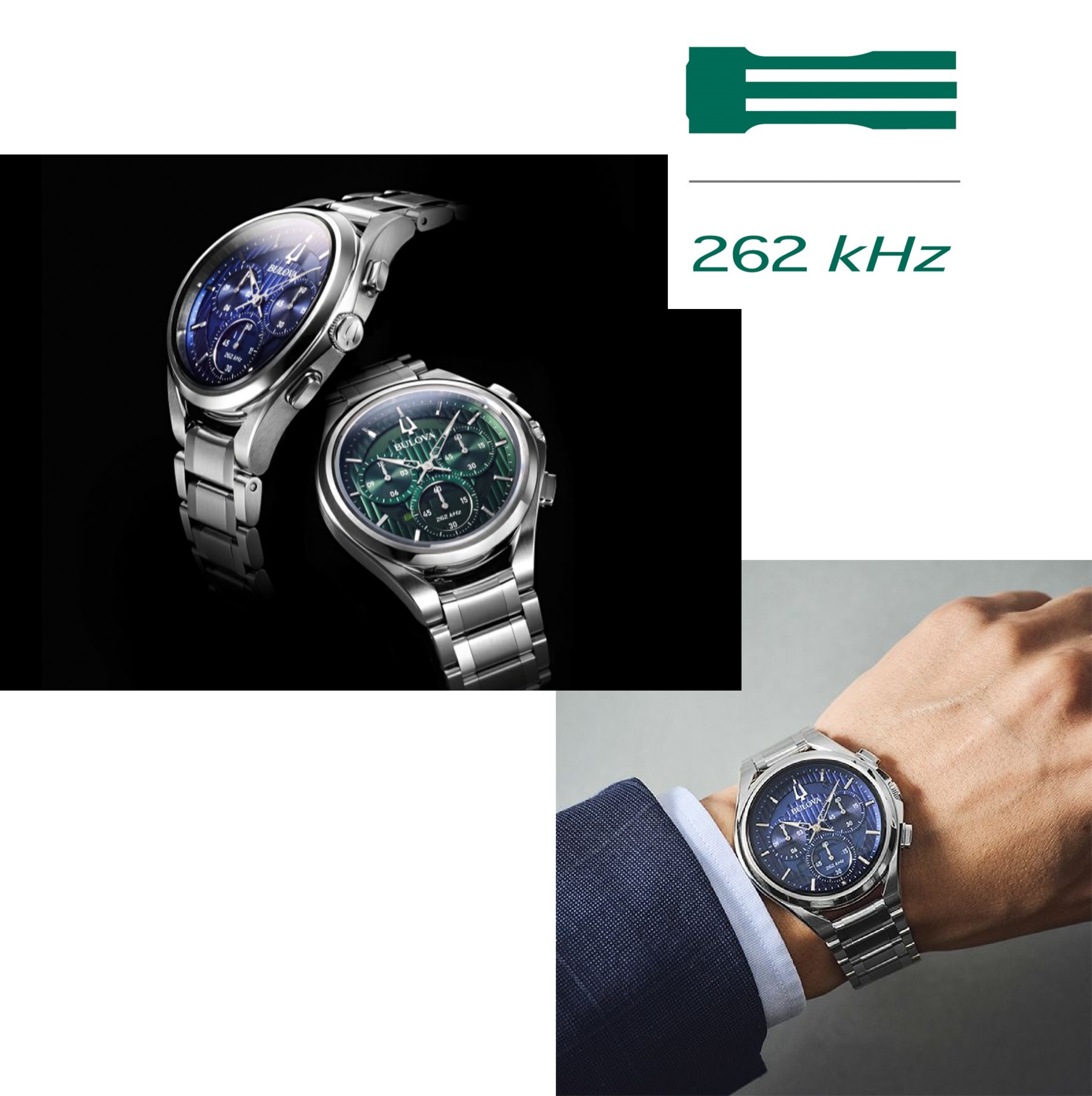 ブローバ独自の高精度クォーツムーブメント"ハイプレシジョンクォーツ"は、262kHzの高振動による比類なき高精度と滑らかなスイープ運針で、至福の時間をもたらします。