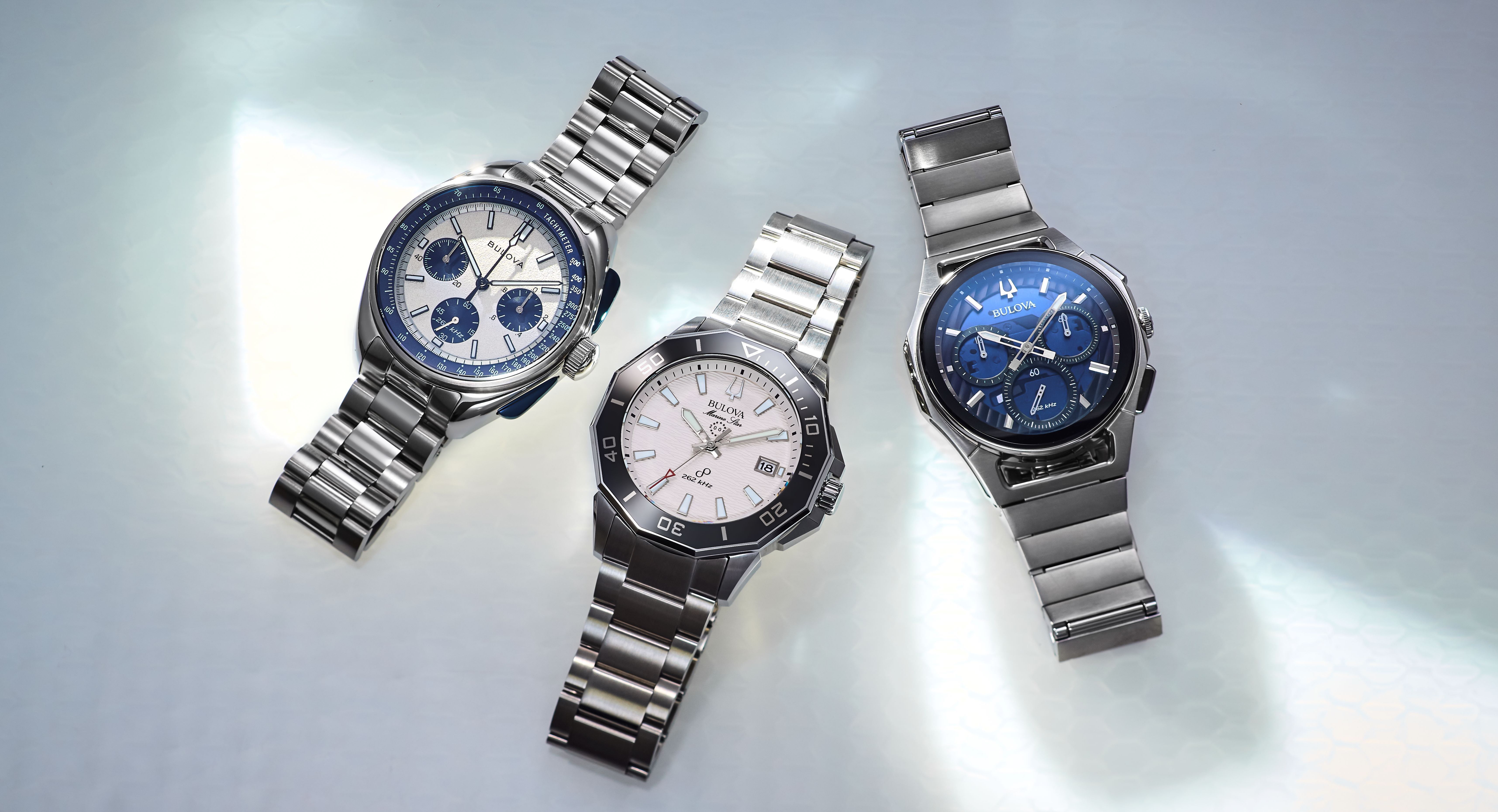 ブローバはその高度な計時精度技術を認められ、1950年代にNASAとアメリカ合衆国からの協力要請を受けて宇宙開発を支援してきました。1971年8月2日には、アポロ15号の船長がブローバの腕時計を着用して月面を探査することに。その時計を現代によみがえらせたのが、「ルナ パイロット クロノグラフ」です。復刻にあたり"ハイプレシジョンクォーツ"を搭載したのは、この時計が最も優れた性能が求められる宇宙開発に使われていたというルーツがあるからです。